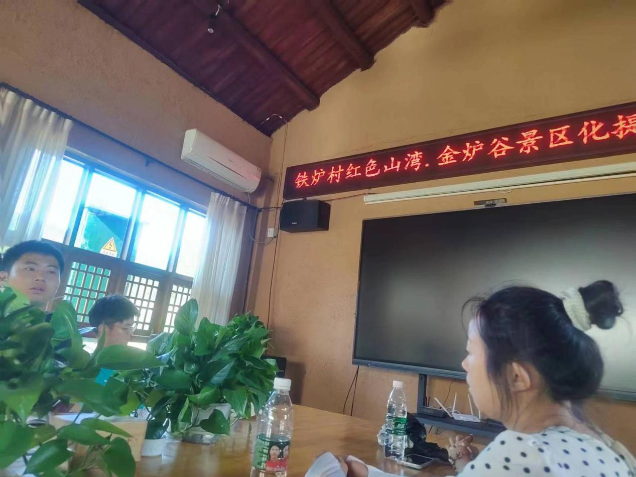 经过简单的休整过后,在村委曹书记的邀请下,队伍于下午两点前往了村委会参加村落近期的发展规划会议。在村委涂书记牵头下,众人就“‘红色山湾·金炉谷’景区化提升工程”问题展开讨论和工作分配。会议上,涂书记多次强调发展乡村研学旅游是铁炉村发展的当前工作的重中之重。他提到,他在近几年先后前往了延安、李庄、德阳等地,参观学习当地的村庄建设,研学建设规划,结合铁炉村的现状、不足,提出要加强铁炉村的特色产品建设,打响铁炉村的品牌形象,大力学习、发扬张勇书记的建设思想、精神的意见建议,让铁炉村的发展蒸蒸日上。