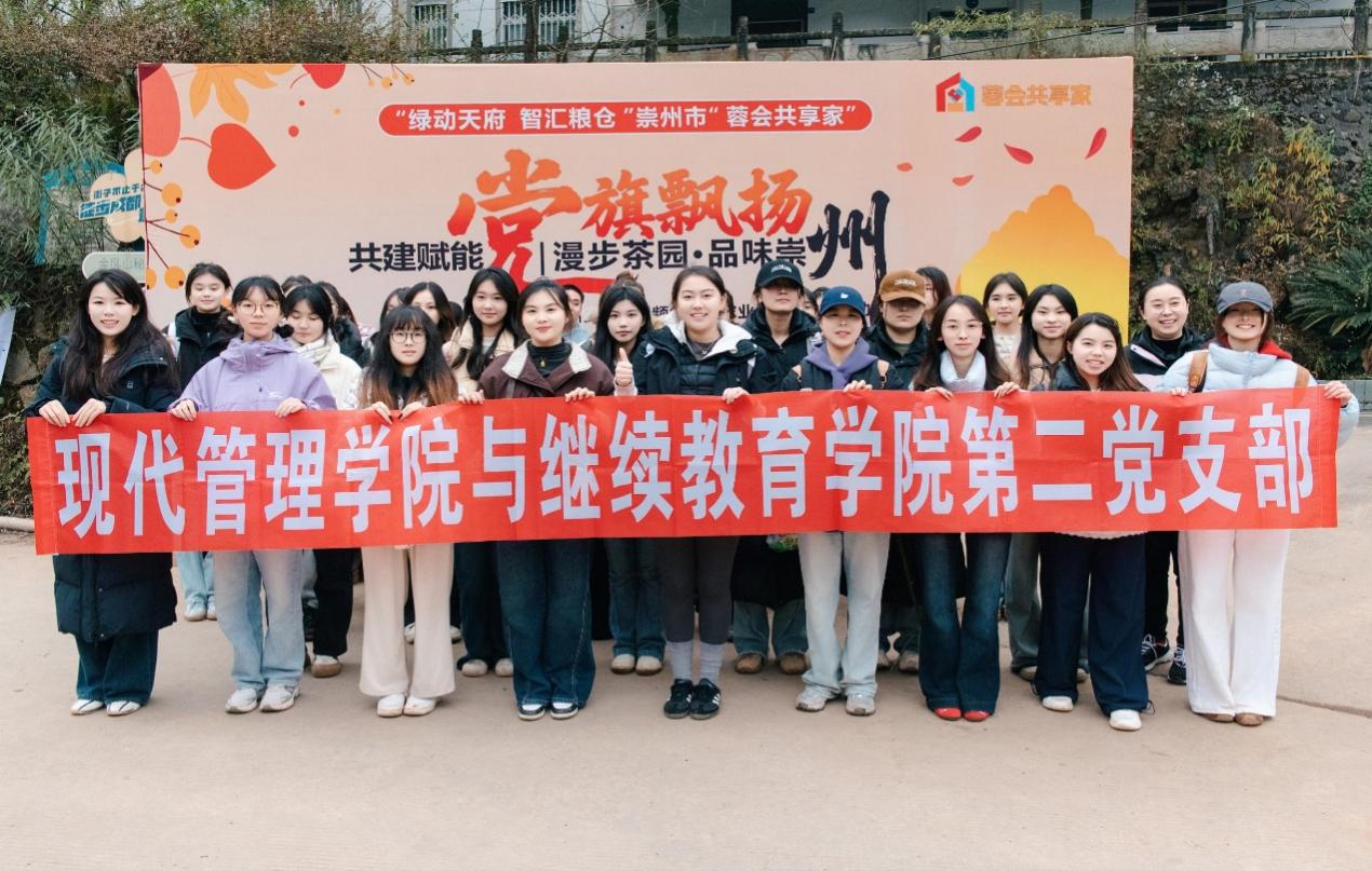 为深化校地支部共建,推动高校青年资源与乡村振兴实践深度融合,现代管理学院与继续教育学院分党委与中共成都市品牌农业促进会党支部于12月19日携手走进崇州乡村,共同开展“漫步茶园·品味崇州”支部共建活动。此次活动由分党委党员代表、第一支部、第二支部部分预备党员及入党积极分子代表参与。