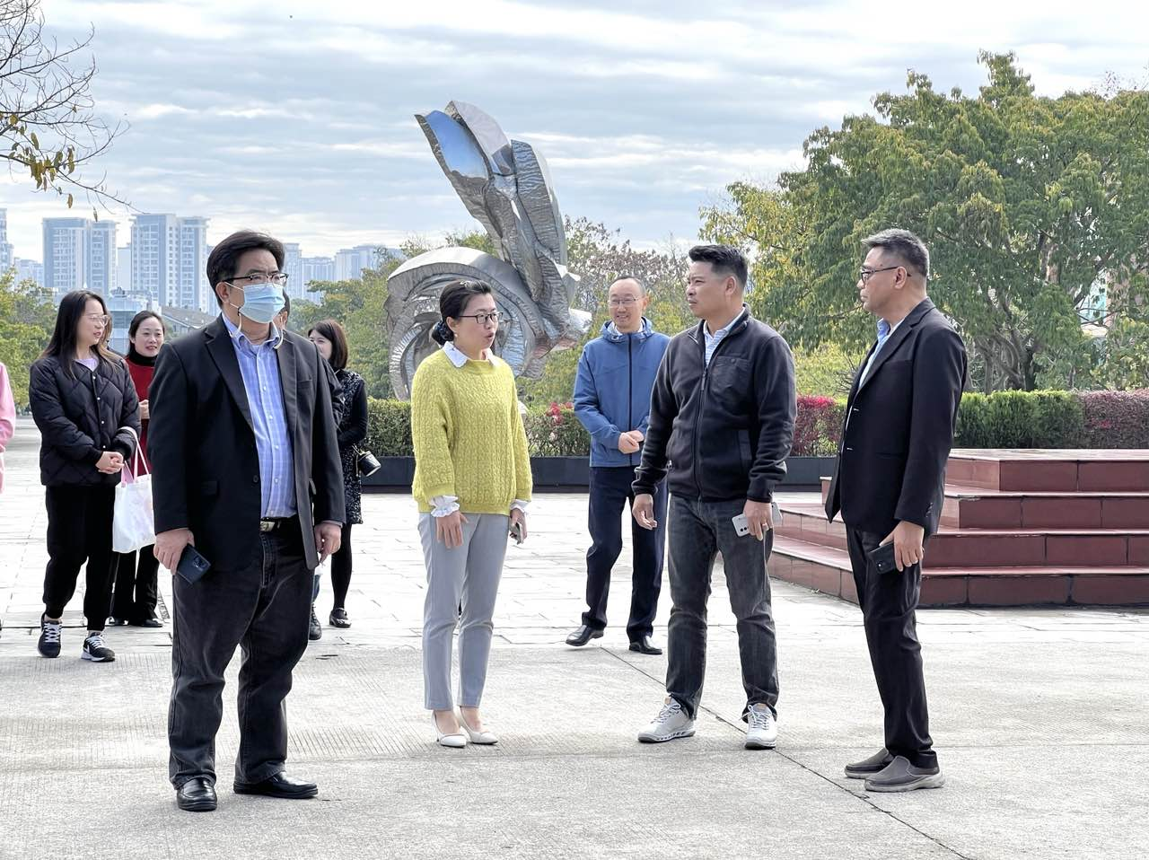 在何亮和学校办公室袁春老师的陪同下,泰国代表团饶有兴趣地参观了西南财经大学天府学院的美丽校园,特别是在下午实地考察了学校的产教融合创新创业基地,对其实行的教学模式和实践成果给予了高度评价。