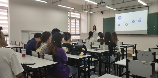 杨茜同学为大家带来了出国留学的一些策略分享,她从“考研或留学的选择”以及“准备流程”两大方面展开讲述,首先为同学们分析了考研和留学两种深造途径的适宜人群,并列举了相关的留学国家,为同学们权衡利弊提供了有效参考。除此以外,她还为同学们分享了留学的流程以及考取雅思的资料获取来源,帮助同学们少走“弯路”。