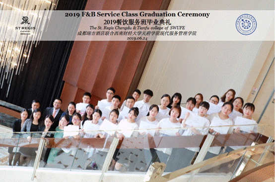 现代服务管理学院旅游管理专业恪守从实践中来到实践中去的原理,于2019年4月与成都瑞吉酒店启动校企合作,联合开设餐饮服务实训课程。此次课程为期两个月,共计32个课时,面向2017级专科旅游管理专业酒店管理方向,于6月24在成都瑞吉酒店举行了本届餐饮服务班的毕业典礼。成都瑞吉酒店总经理戴佳楷先生、人力资源总监杭莉女士、餐饮副总监白...